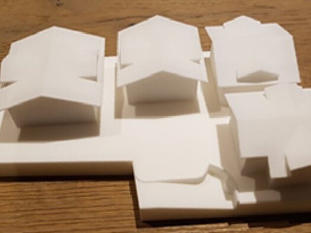 Modellierung für Architekturmodell mit Dachlandschaft und Umgebung, Modelldruck, visualisierung...