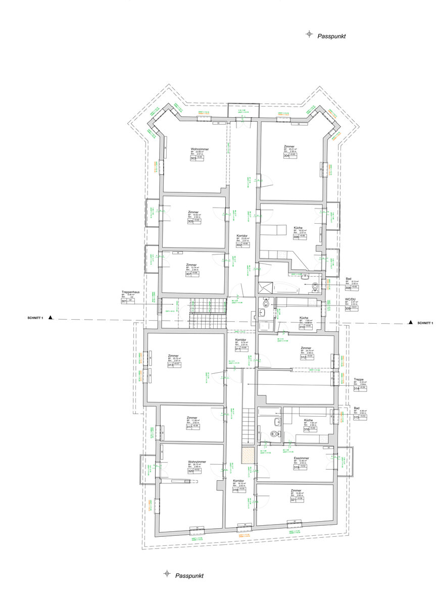 Lassen Sie ihren Grundriss, Fassade oder Schnitt nur als masstäblichen Punktwolkenschnitt darstellen und digitalisieren Sie Ihre Pläne nach Ihren Anforderungen selbst.